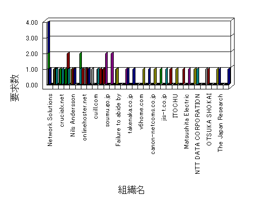 組織ユーザーにインターネット接続を提供する、商用または非営利団体、学術・行政機関などの、インターネット ドメイン で識別される団体や組織です。Microsoft Site Server Analysis は同じ組織に登録されたすべてのドメインを 1 つの組織としてグループ化します。ドメインがデータベースで使用できない場合は、1 つのインターネット ドメインが 1 つの組織を識別するのに使用されます。
